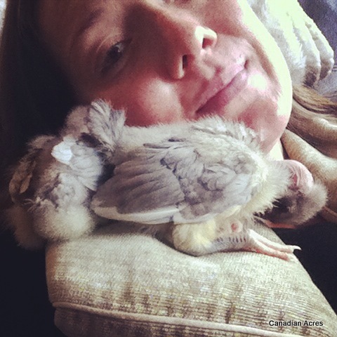 It has s split beak which is a deformity in the chicken world so I got it for free. And I’m in love.