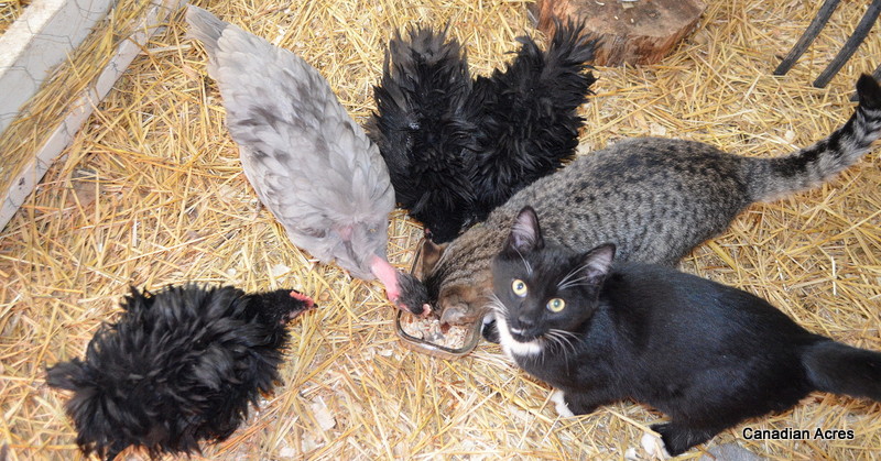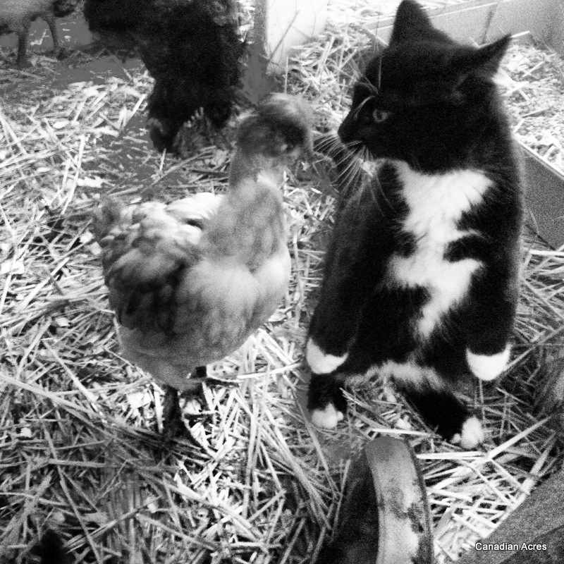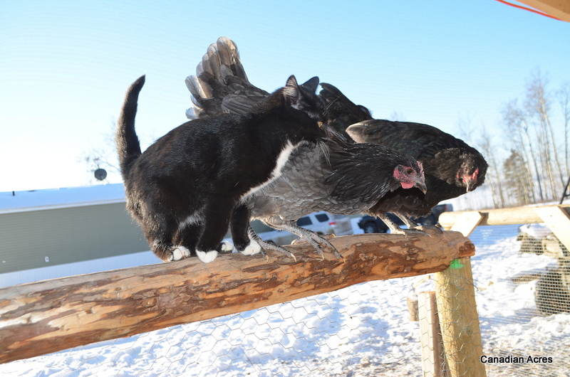 Most of you who follow me on Facebook or Instagram know that I have two kittens living amongst my flock of chickens. It was a logical place for them to go as the tack shed is kind of far away and not yet equipped for two barn cats. I didn’t know if they would get along, just hoped that since most of the chickens were larger than the kittens at the time, they would learn to coexist peacefully. I wasn’t prepared for the amazing relationships that have formed.