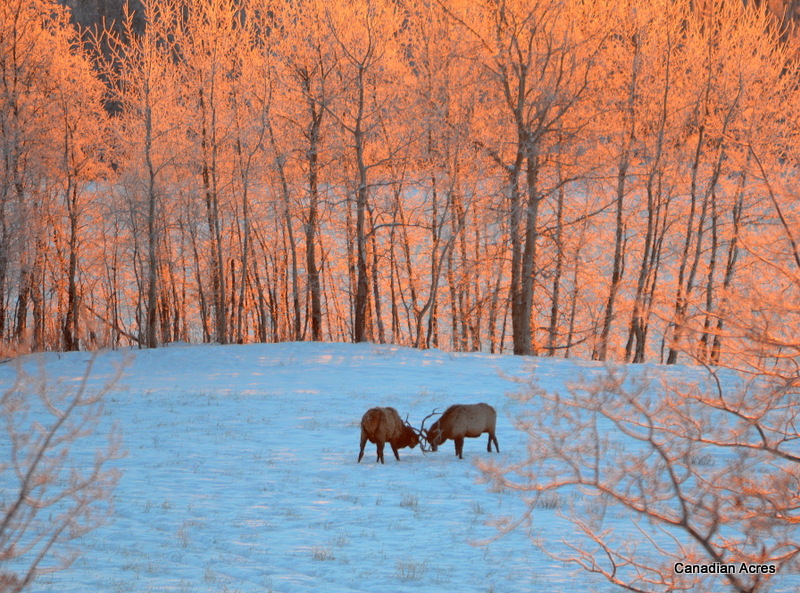These elk were very interested in our horse feed and were giving the horses a hard time. I chased them off of the bale last week and we haven’t seen them since. It’s warmed up a bit, so it doesn’t necessarily mean we’ve seen the last of them…