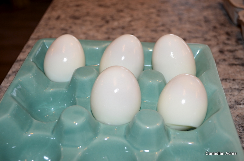 Since my husband loves hard boiled eggs I attempted to keep at least a half a dozen in the fridge at all times. Though, our eggs are so fresh, they didn’t peel very easily. In fact, not easily at all. By the time you got the shell off, you’d have half an egg left. After researching (google) I found out that this is common among farm fresh eggs, which is concerning since I never seemed to have the problem with store bought eggs… Makes you wonder how “fresh” they really are. Someone suggested adding baking soda to the cooking water. Okay, let’s do that. Once again, a peeling mess and now the eggs tasted a bit like sulphur. Gross.