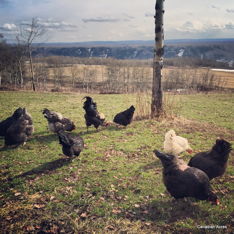 The chicks are growing fast and will be 6 weeks this Friday. Holy crap. It’s exciting to see their plumage grow in and their colors begin to show. Josephine sleeps with them at night but has left them for dead during the day as the snow is going fast and there is green grass to forage. Oh the life of a Canadian Acres chicken.