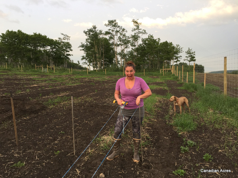 That’s right folks, I have tomatoes planted in the ground and growing. I know, I know, I never thought I’d get there but after a lot of freaking work and a little bit of luck (that goes by the name of Laura) we successfully built, planted, mulched and irrigated about 1/2 an acre or our first ever Canadian Acres garden. HOORAY!! Though I will say that it would never have been possible without the help of my husband and my dear friend Laura, who most awesomely decided to make the trek from Alaska and spend her vacation doing manual labor. How great is that!After a bit of a, ahem, delay, Laura showed up on the last Sunday in May.