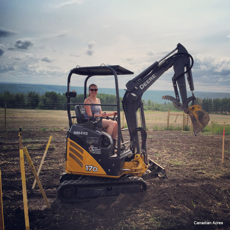 After feeling immensely proud, we immediately rented a mini excavator after that first row. There was no possible way we a) wanted to hand dig 20 more 100′ rows and b) would possibly have time for it. I mean, we had lots of Alaska beer to drink. So I spent the $200, Clay picked up the machine in the morning and we spent that day piling rows. This was my redemption as apparently I’m quite talented in the excavator department.