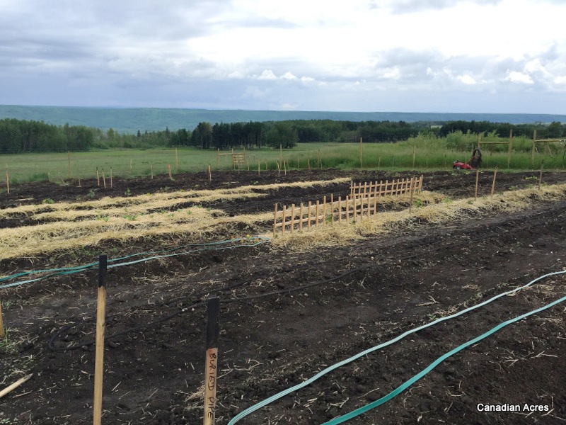 All planted and slowly but surely getting mulched with straw, trellised and irrigated