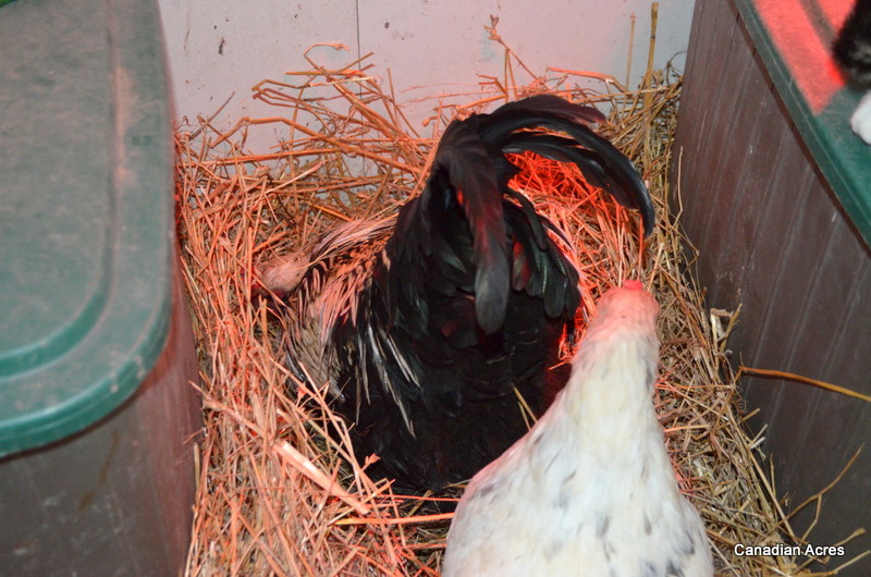 So all in total we have four hatched, one that died on it’s way out of the shell, and one that is still “cooking”. I originally set fourteen eggs so although not the greatest success rate, I’m pretty impressed with my two broody gals. Over the past three weeks we’ve had temps down to -20 so they did their job well.