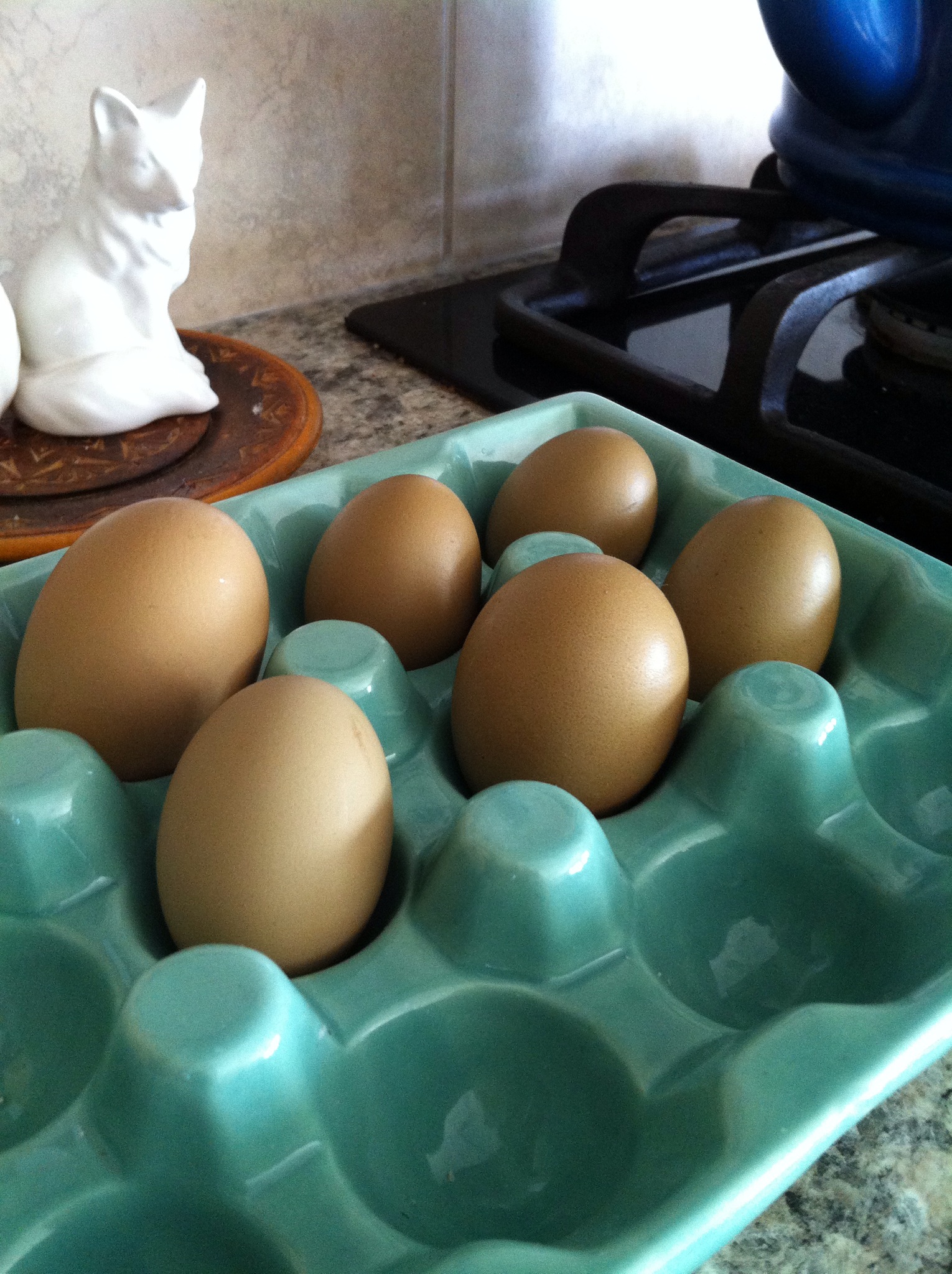 All five of my laying hens have started to lay, and I have an over abundance of eggs. How lucky are we.